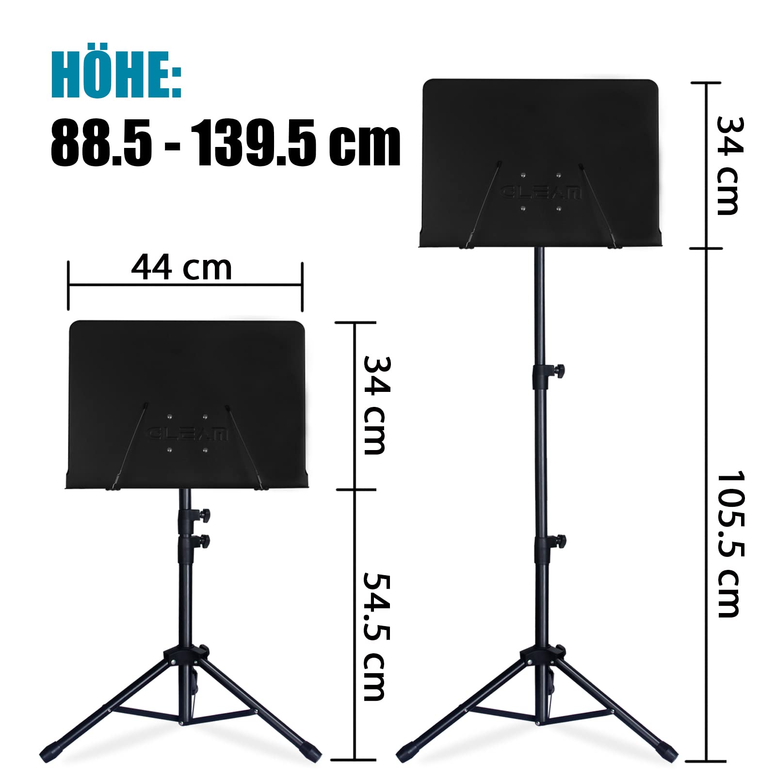 GLEAM Notenständer 5-in-1 – Metall, Tragetasche, Klammer